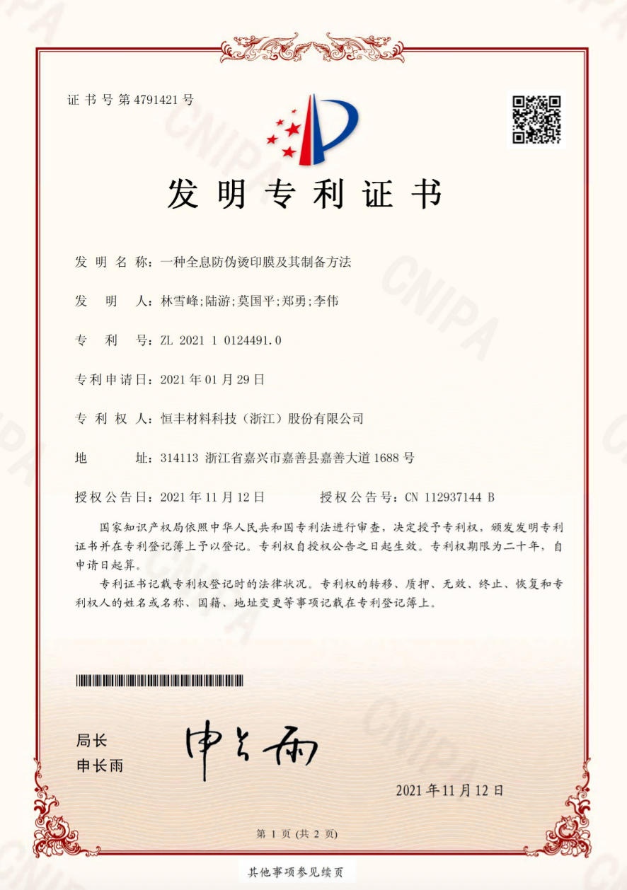 Founded in 2004, as a national high-tech enterprise, Hengfeng has been dedicating to innovation and production of high-tech and environmentally-friendly transfer materials including metallic foil, pigment foil, holographic foils and transfer paper (foil), serving the applications of wine label, packaging box, plastic bottle/tubes, cigarette tipping paper, cigarette package, and some anti-counterfeit areas. Our products are sold to more than 20 provinces of China and also well received by over 40 clients from overseas, especially the ones from Europe and Americas.